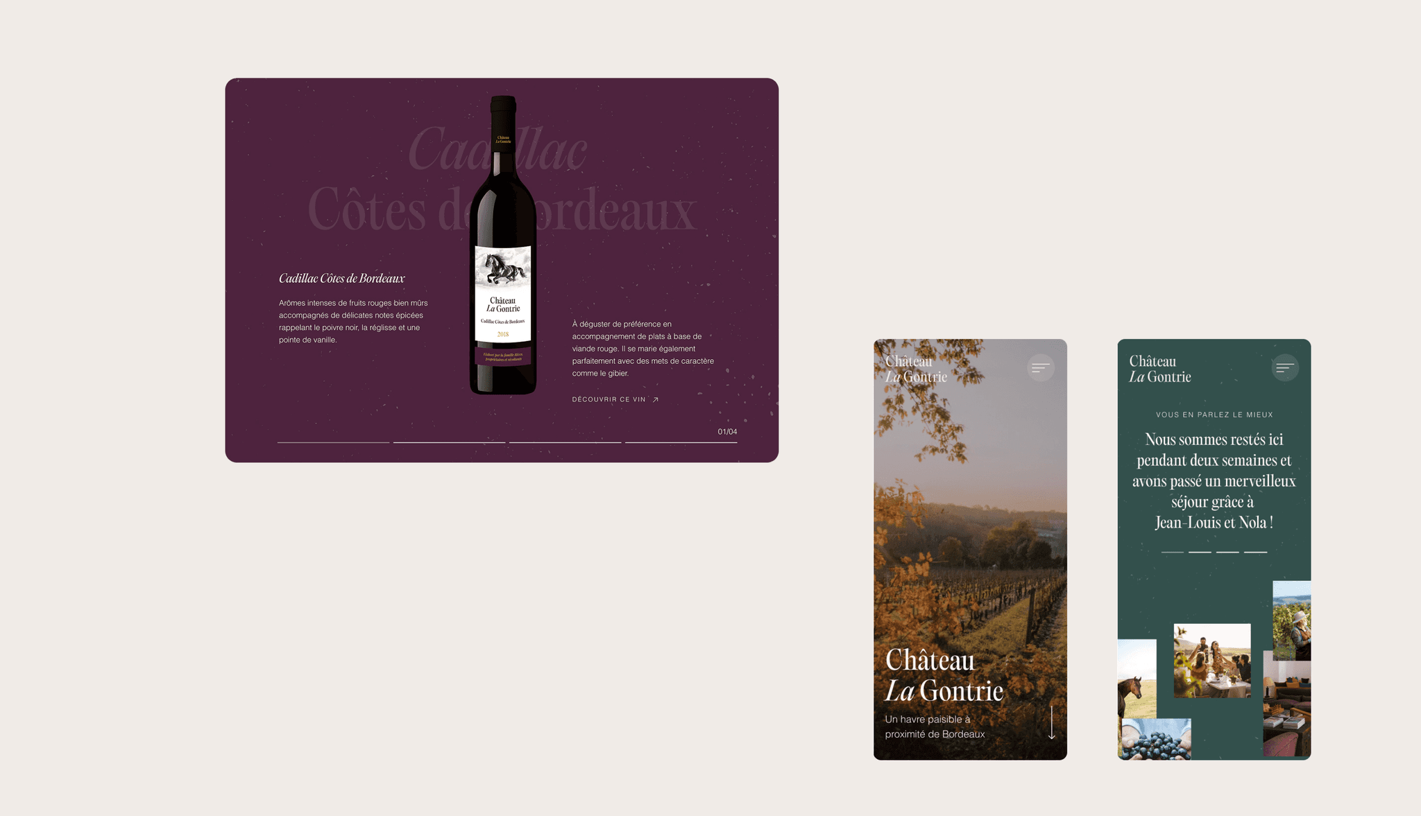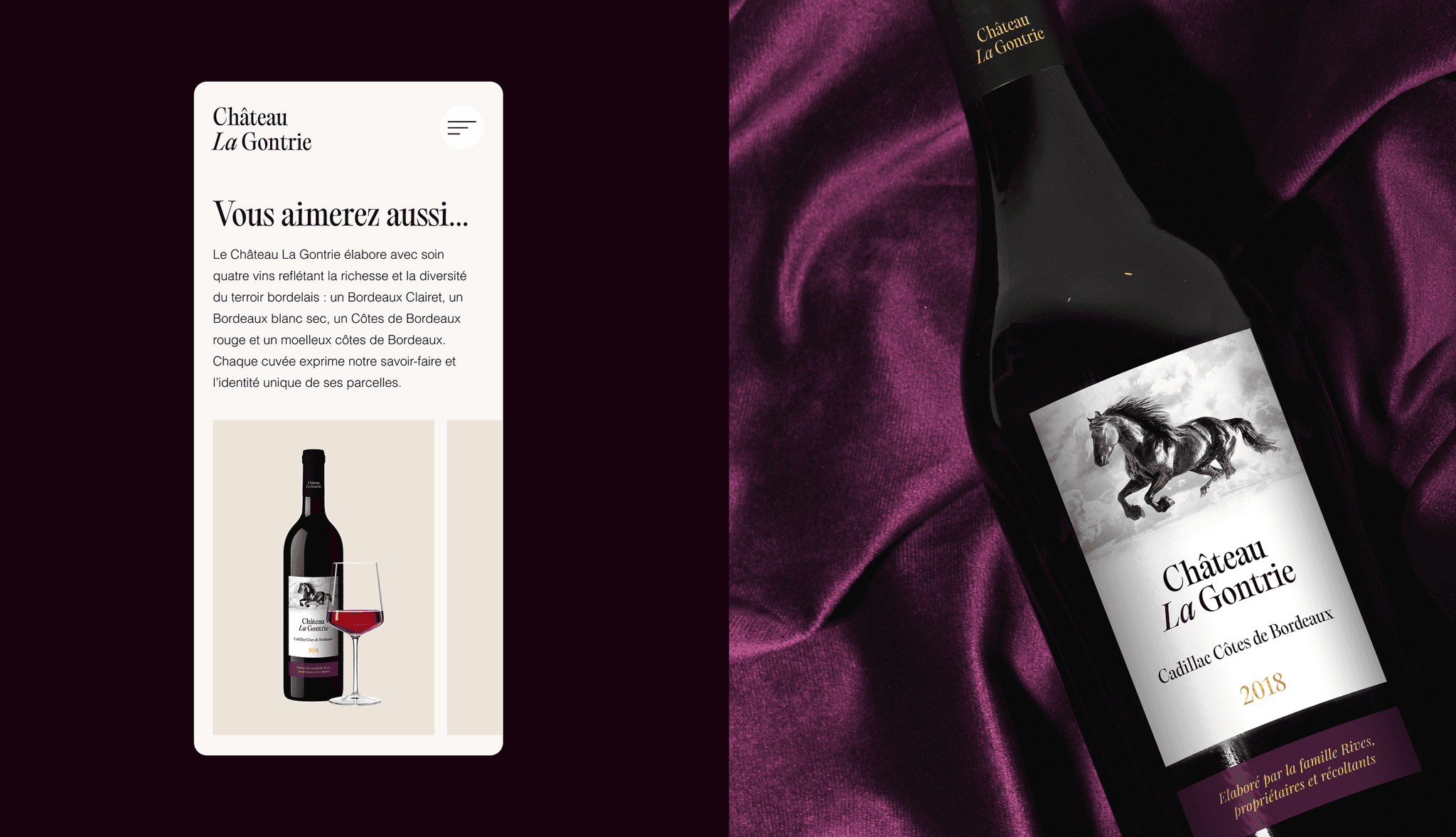 Mise à jour complète de l’identité et de la plateforme digitale d’un domaine viticole bordelais. La refonte comprend la création d’un nouvel univers visuel, le redesign du site web et ainsi que le travail sur les étiquettes de vin, le tout pour séduire une nouvelle clientèle tout en préservant l’âme authentique du domaine.